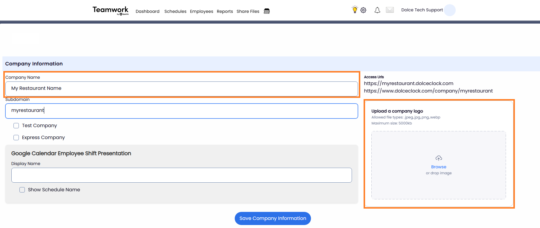 Remember to click Save Company Information at the bottom of the page to save all the changes.