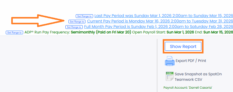 Review Payroll Warning at the top of the report. Resolve those that apply, and coordinate with HR for warnings that exceed managerial control (i.e. Payroll Mapping)