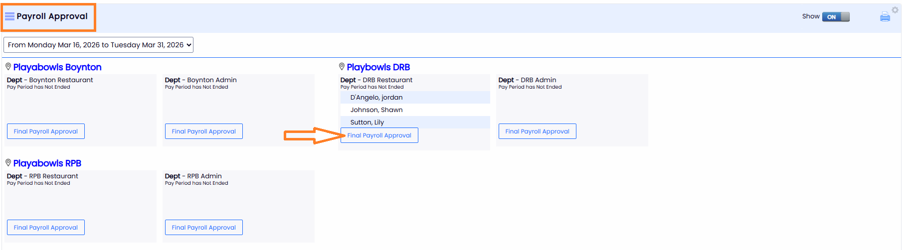 - NOTE: Managers can not sign-off if all time punches and No-Show shifts have not been approved. A link is provided so that unapproved punches can be addressed.