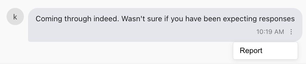 - Long-press (mobile) or click the menu icon on the message you want to report