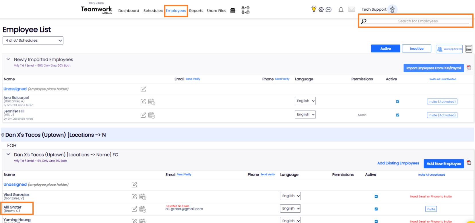 Either search for the Employee's Name, or click on the Employee from the Employee List