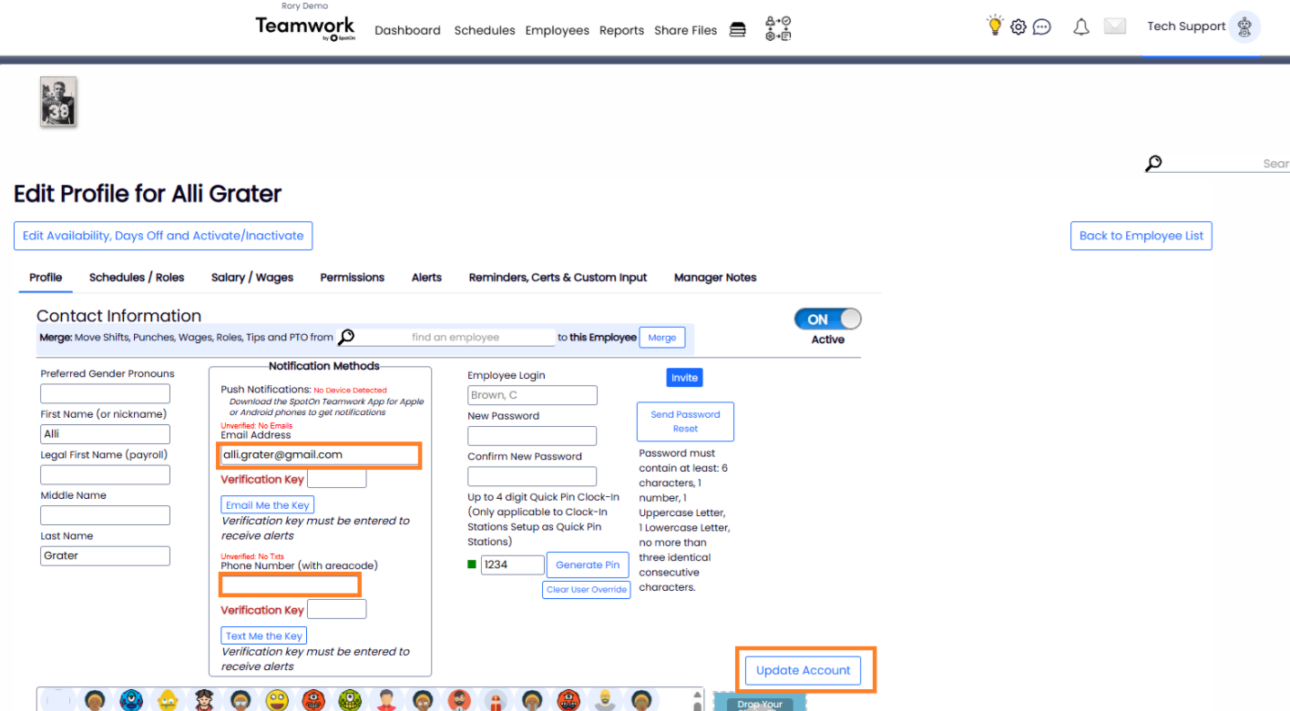 Select the Profile Tab > Here, you’ll see all contact information related to that employee.